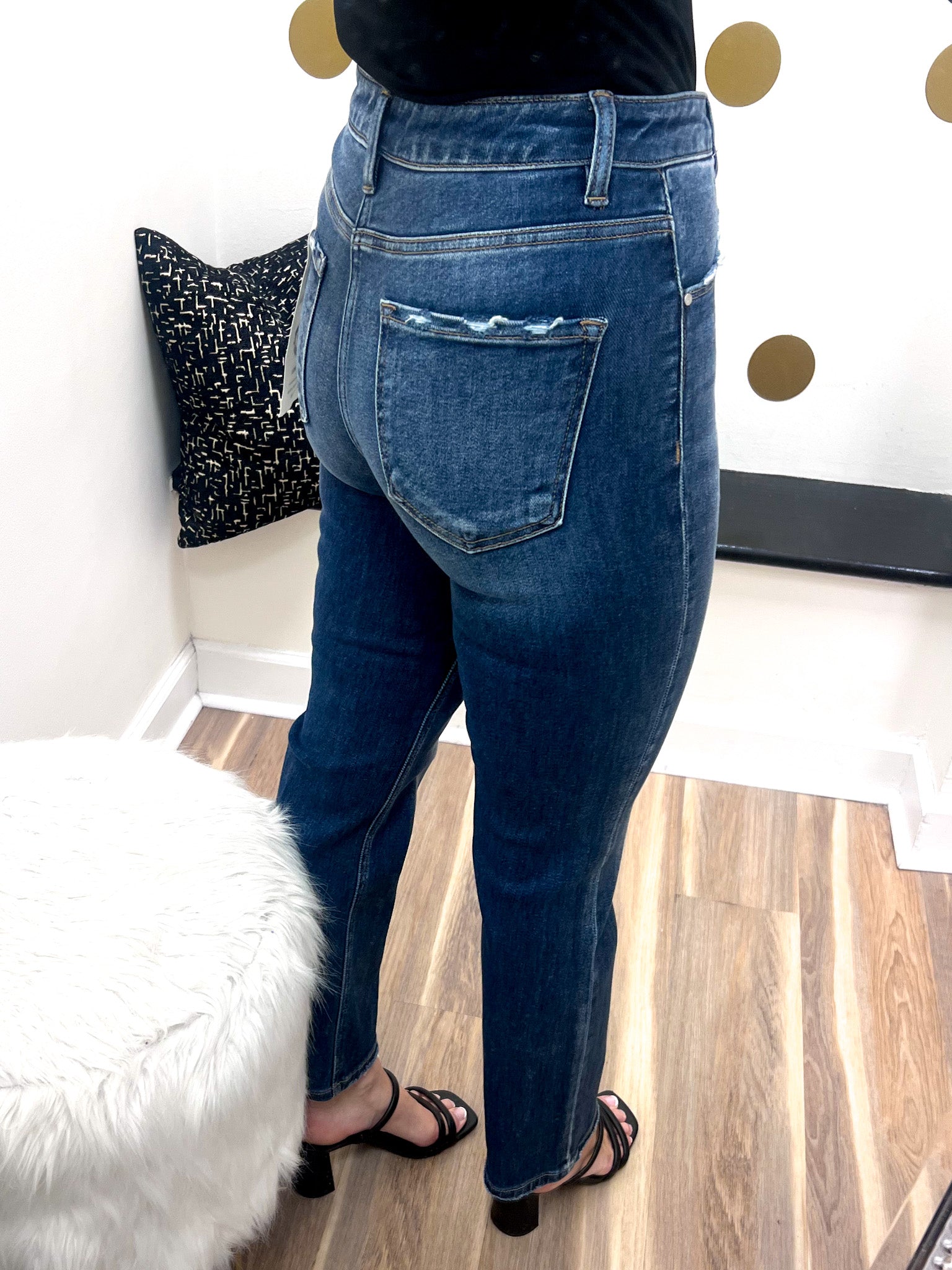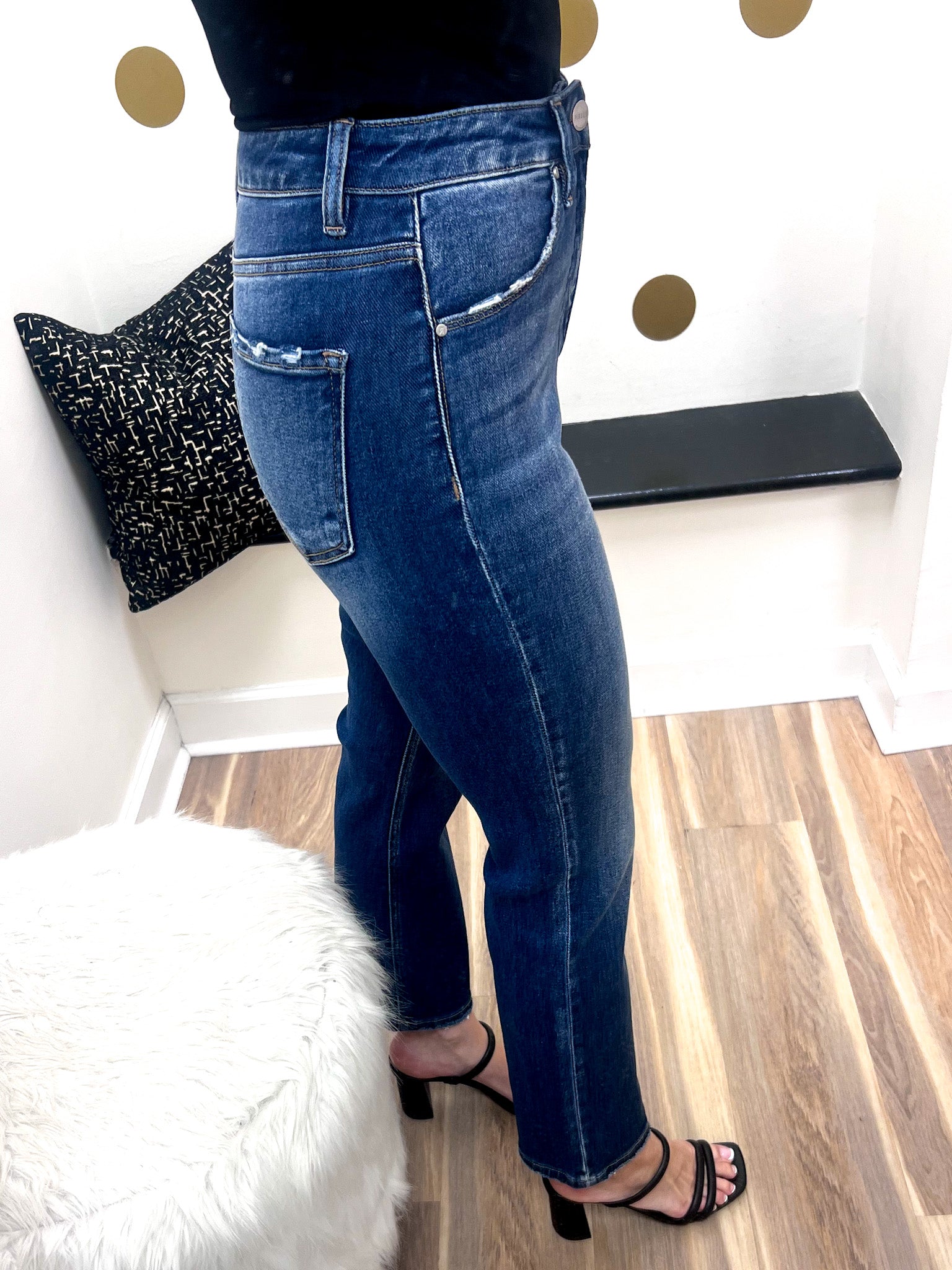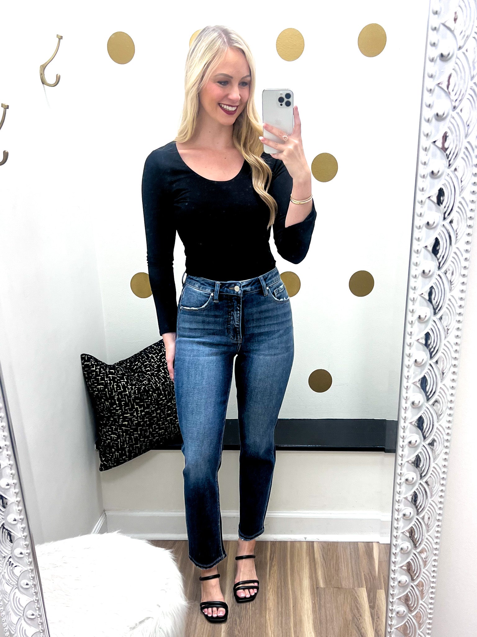 These Isabelle Jeans in a dark wash combine playful style with tummy-control magic. Featuring a high-rise crop and a straight-leg cut, they're perfect for showing off your favorite shoes while keeping your midsection smooth and comfy. Dress them up or down for effortless chic every day.