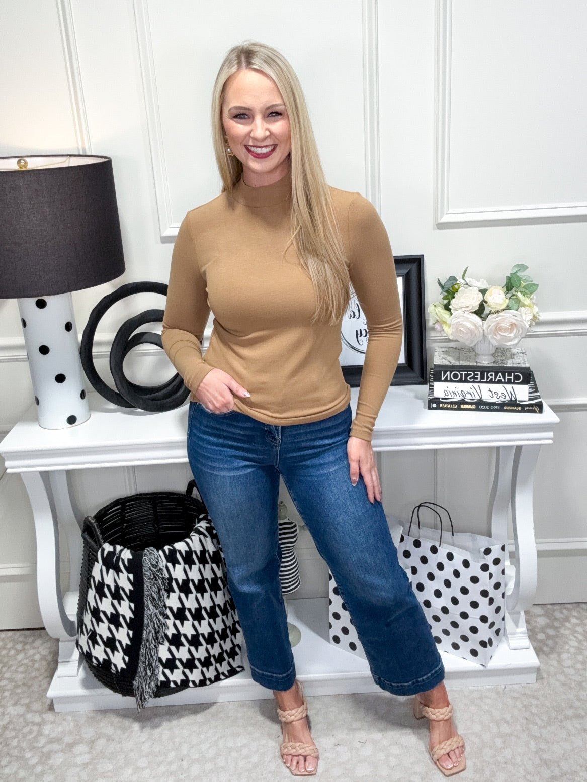 Get cozy and chic with the Olivia Top! Featuring a snug turtleneck and long sleeves, this playful piece keeps you stylishly warm while adding a touch of fun to your wardrobe. Perfect for layering or wearing solo, it’s your new go-to for effortless cool.
