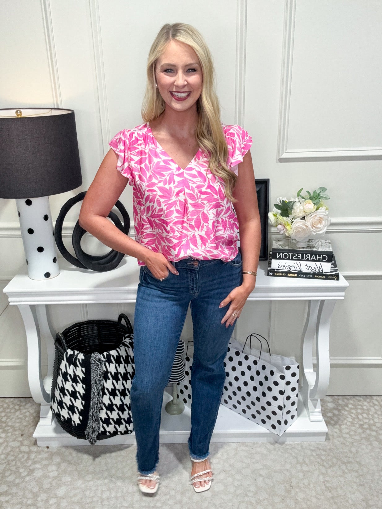 Effortless style meets playful charm with the Tucker Top. This lightweight beauty features a delicate floral print that brings spring to life, paired with a flattering V-neckline and adorable ruffled short sleeves. The straight fit skims your silhouette without clinging, making it perfect for casual days or dressed-up occasions. Whether you're running errands or meeting friends, this top delivers that perfect blend of comfort and fashion-forward flair.