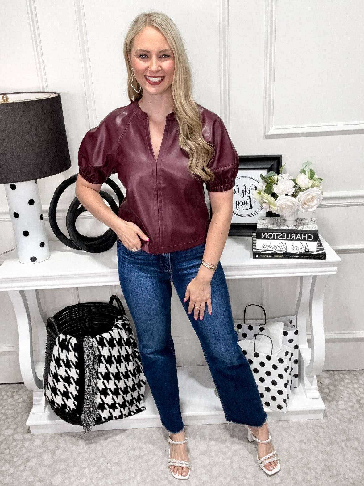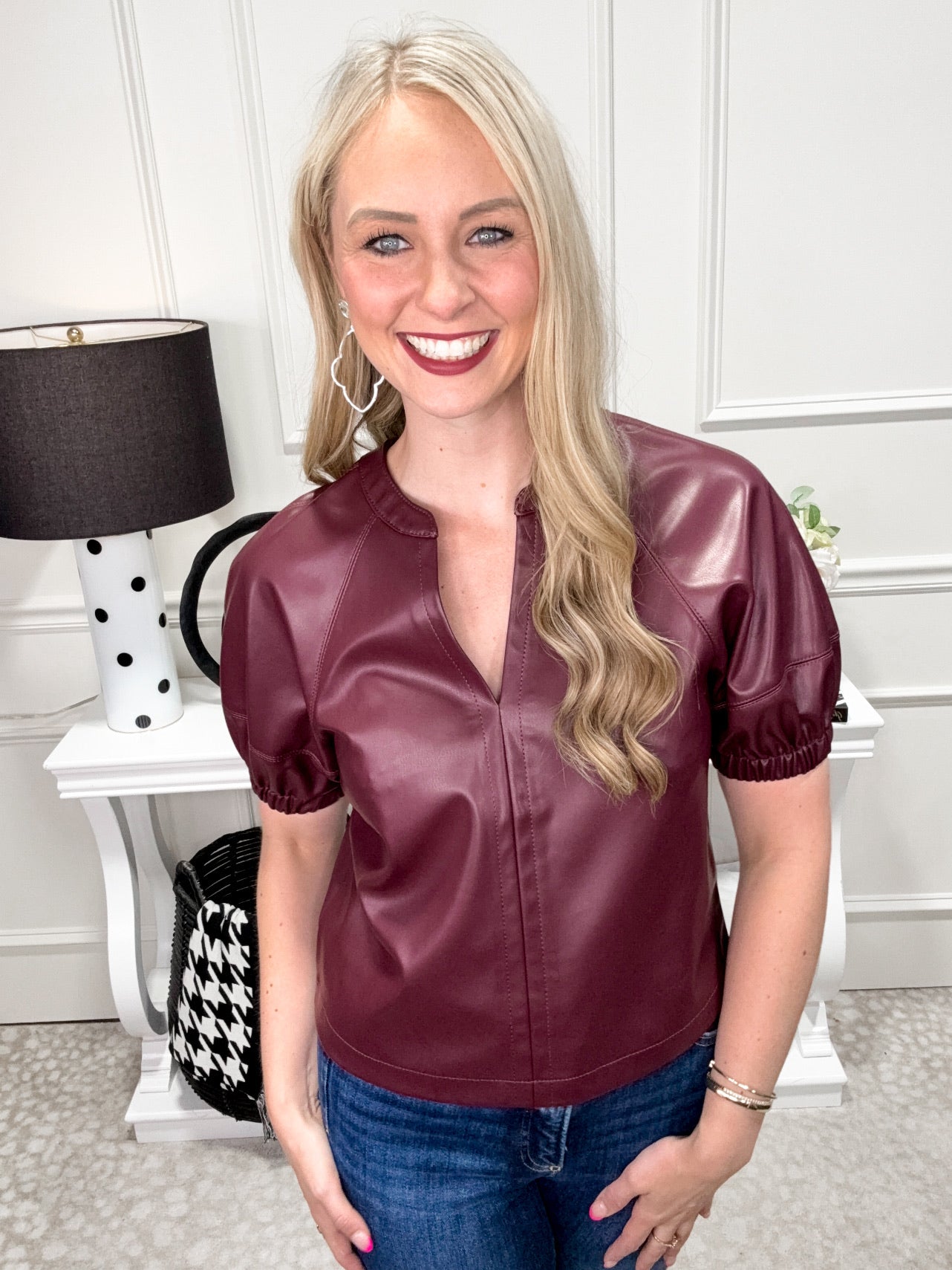 Add a fun twist to your style with the Hanna Top! Its short puff sleeves in luxe faux leather bring a playful edge, while the flattering fit ensures you stand out with confidence. Perfect for turning heads and adding a dash of bold charm to any outfit.