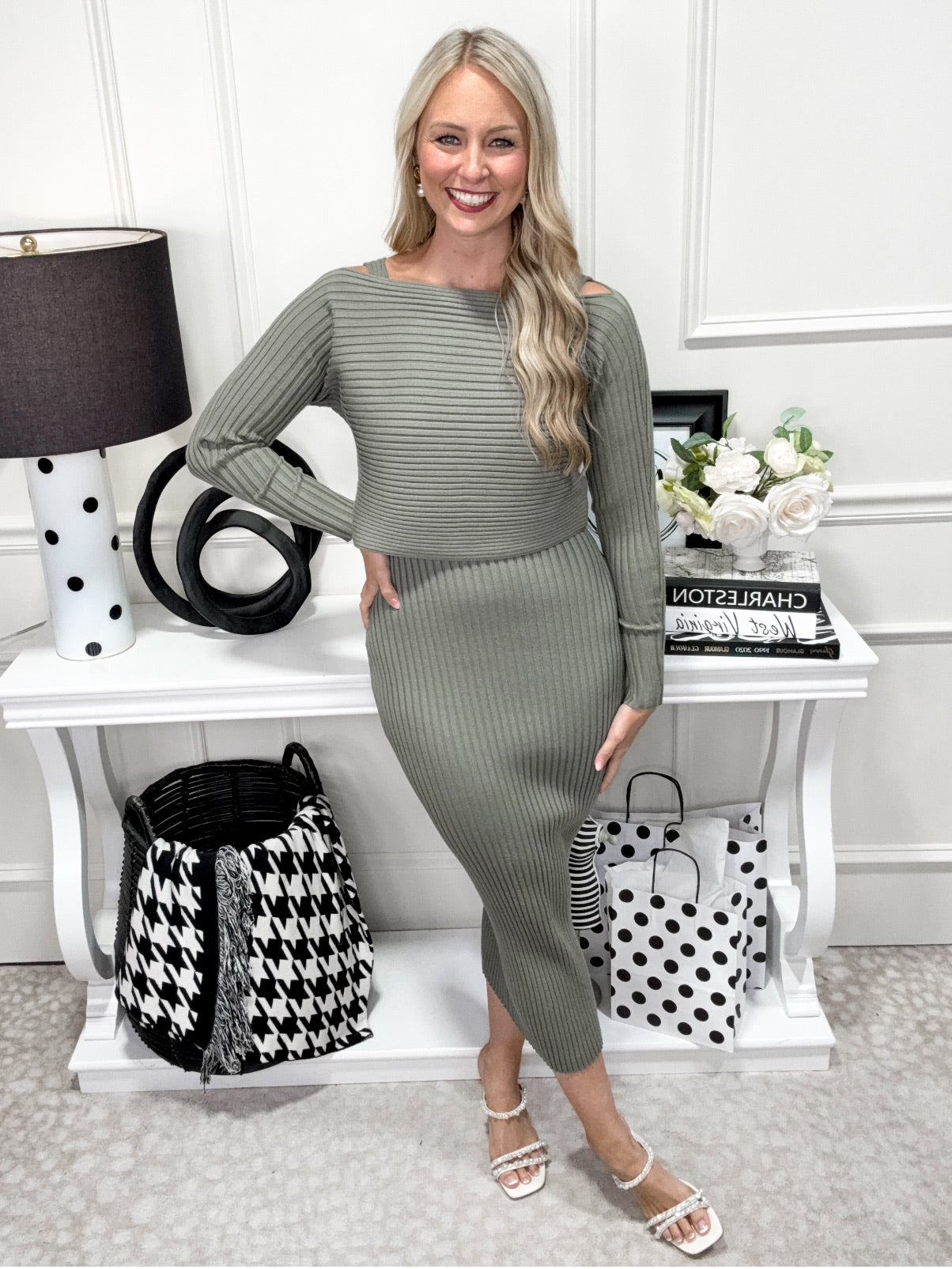 Slip into the Lydia Set for a cozy yet chic look! Made from soft ribbed fabric, this snug-fitting ensemble hugs you in all the right places. The matching topper adds a flirty flair to the sweater dress, making it your go-to outfit for everything from brunch dates to evening strolls. Comfort and style? Yes, please!