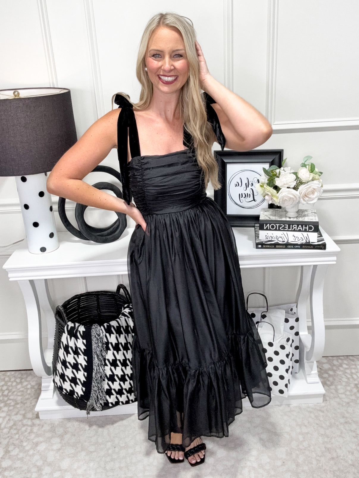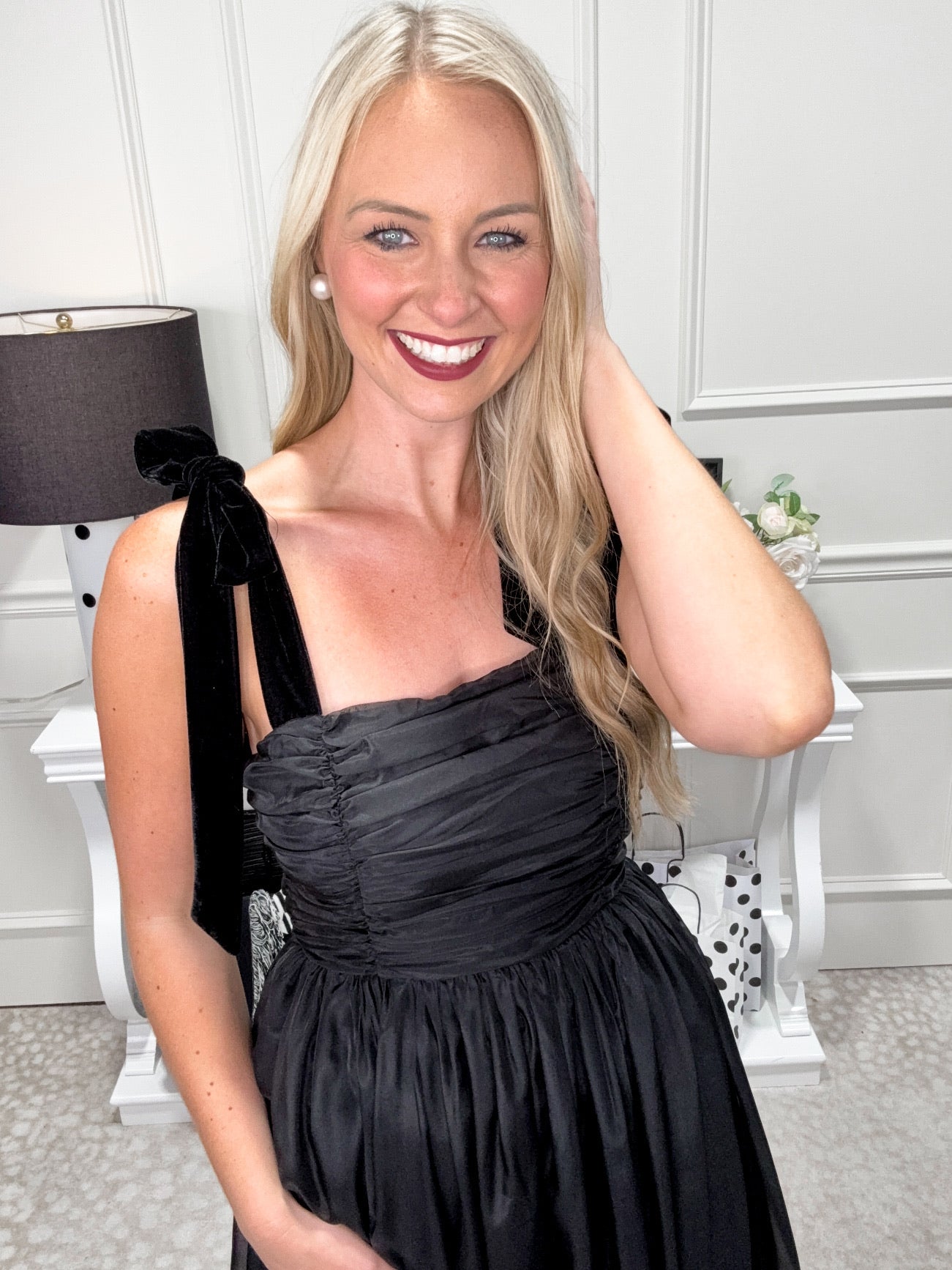 Step out in style with the Madison Dress, featuring playful ruched detailing and charming tie shoulder straps. Its elegant tulle fabric and flattering midi length make it perfect for any night out. The straight neckline adds a touch of sophistication, while the invisible back zipper ensures easy wear. Pair it with your favorite heels and a high bun for a look that’s both fun and effortlessly chic.